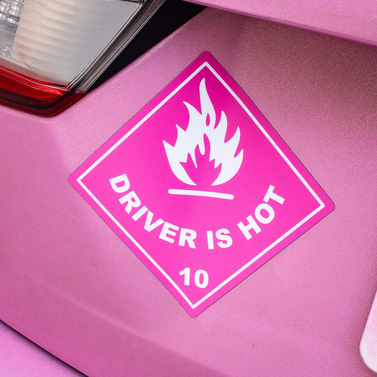 This design is inspired by the caution signs on hazardous vehicles that have the flames warning of high flammability (or something). Those signs usually have a number on them too; so for this design I chose the number 10 to represent how hot the driver is on a number scale that goes up to - you guessed it - TEN!
